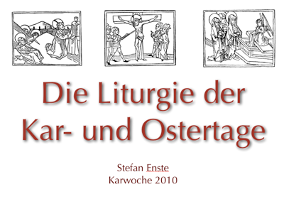 Ausgerechnet die Liturgie des sogenannten Triduum Sacrum - Gründonnerstag, Karfreitag, Osternacht - hat bei vielen katholischen Christen keinen guten Ruf: Vieles erscheint ungewohnt, unverständlich, lang und langweilig. Leider bleiben den meisten Gottesdienstbesuchern die Bedeutungen von Riten, Zeichen, Lesungen und Texten verborgen, da sie nicht erklärt werden. Dieser Vortrag möchte Hintergründe, Bedeutungen und Entstehungsgeschichte der feierlichen Liturgie der höchsten christlichen Feiertage erhellen, um den Gottesdienstbesuchern den Reichtum dieser Feiern zu erschliessen, letztlich also, um eine aktive Teilnahme an den österlichen Gottesdiensten zu ermöglichen.